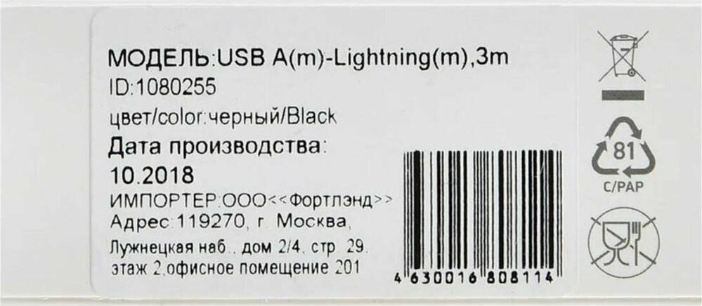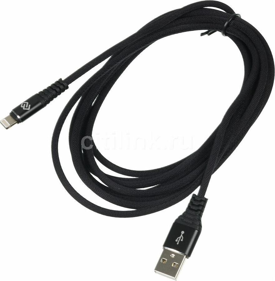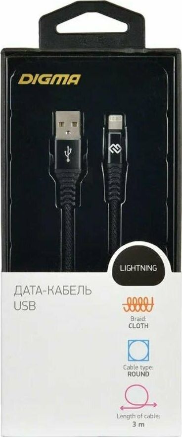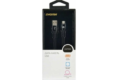 DIGMA Кабель LIGHT-3M-BRAIDED-BLK USB (m)-Lightning (m) 3м черный