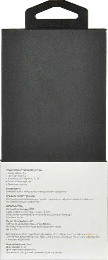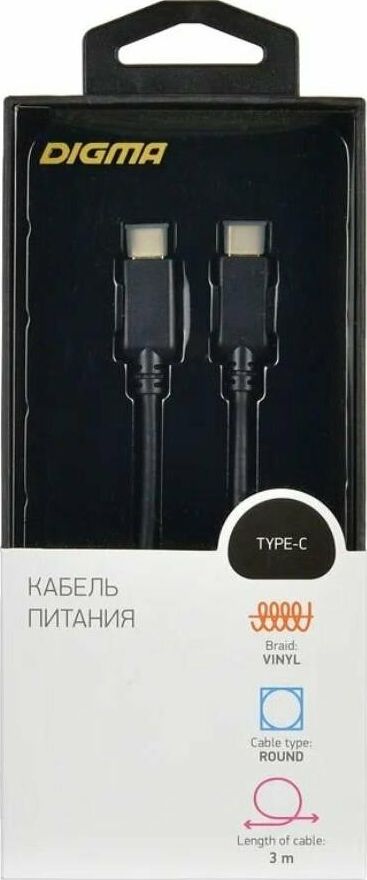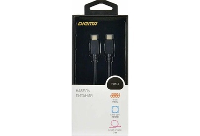 DIGMA Кабель Power Delivery 60W PD-60W-3M USB Type-C (m)-USB Type-C (m) 3м черный