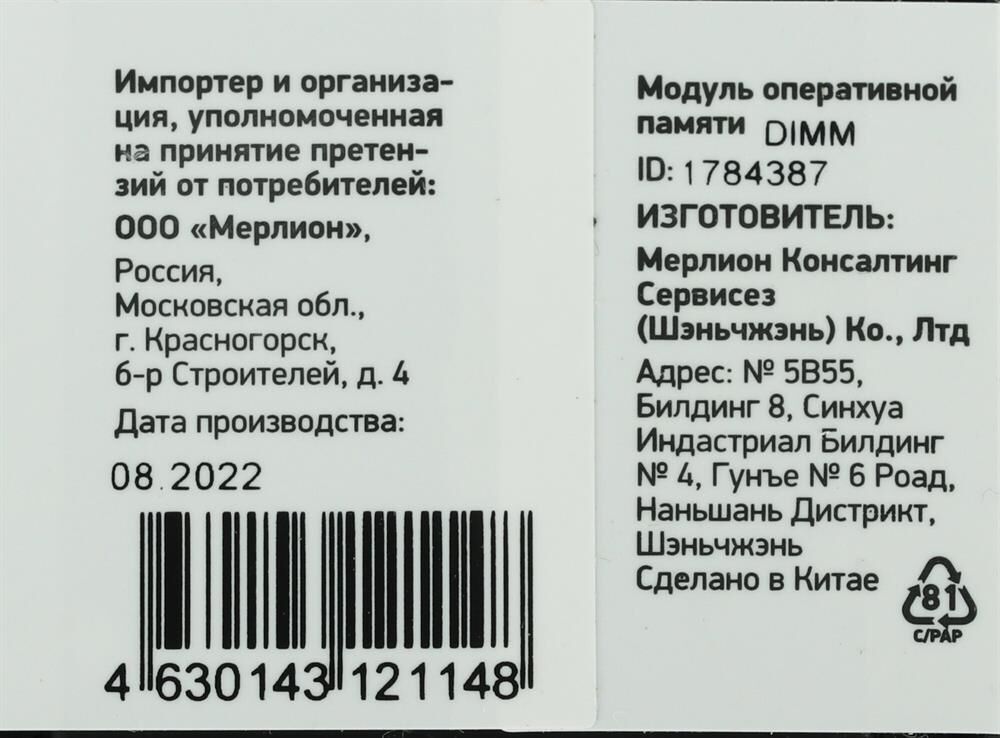 Тип памяти: DDR4. Тактовая частота: 3200. Радиатор охлаждения: нет. Тип поставки: Ret. Форм-фактор: DIMM. Поддержка ECC: не поддерживается. Буферизация: unbuffered. Особенности: single rank 1R*8. Количество контактов: 288-pin. Показатель скорости: PC4-25600. Напряжение: 1.2В. Задержка: 22-22-22-52. Латентность (CAS): CL22. Габариты упаковки (ед) ДхШхВ: 0.16x0.04x0.01. Вес упаковки (ед): 0.03. RAS to CAS Delay (tRCD): 22. Row Precharge Delay (tRP): 22. Объем одного модуля: 8. Пропускная способность: 25600. Суммарный объем памяти всего комплекта: 8. Обозначение памяти: UDIMM. Гарантия: 120 мес.. Форм-фактор: UDIMM, 288-pin. Тайминги: 22-22-22-52. Тип поставки: Ret. Объем: 8 ГБ. Частота: 3200 МГц. Латентность: CL22