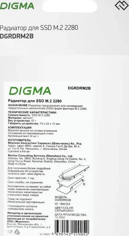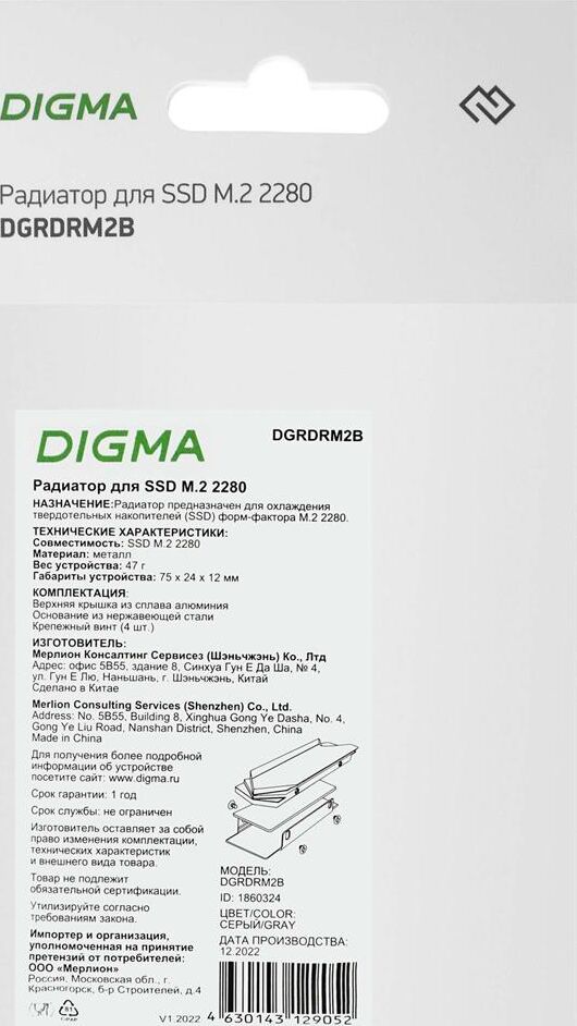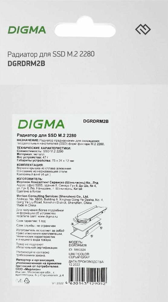 DIGMA Радиатор для SSD DGRDRM2B черный металл Ret