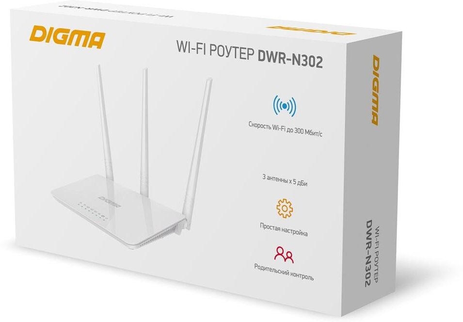 DIGMA Роутер беспроводной DWR-N302 N300 10/100BASE-TX белый (упак.:1шт)