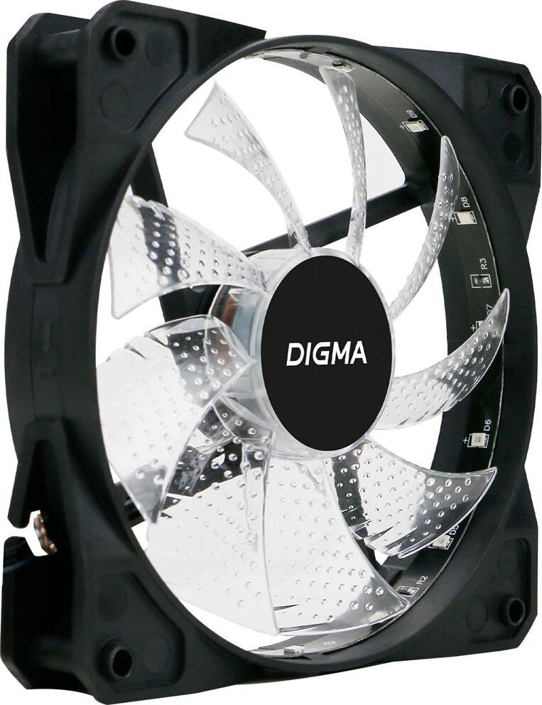 DIGMA Вентилятор DFAN-FRGB2 120мм, 3-pin, от БП:4-pin (Molex), 1200об/мин, 23 дБ, RGB, черный, Ret
