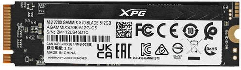 Диск SSD A-DATA SSD накопитель XPG Gammix S70 Blade AGAMMIXS70B-512G-CS 512ГБ, M.2 2280, PCIe 4.0 x4, NVMe, M
