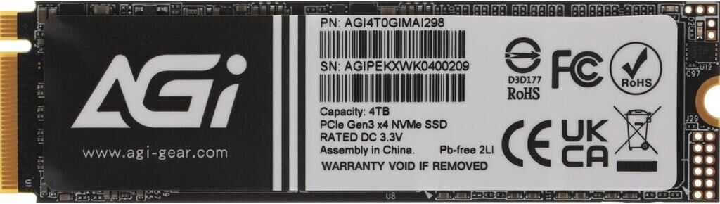 Диск SSD AGI Накопитель SSD PCIe 3.0 x4 4TB 4T0GIMAI298 AI298 M.2 2280
