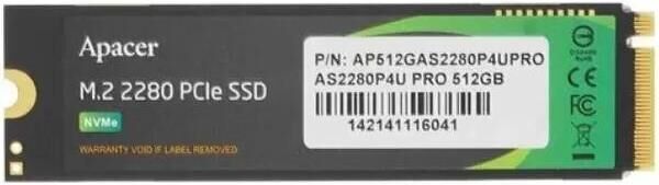 Диск SSD APACER M.2 2280 512GB AS2280P4U PRO Client SSD AP512GAS2280P4UPRO-1 PCIe Gen3x4 with NVMe, 3500/2300