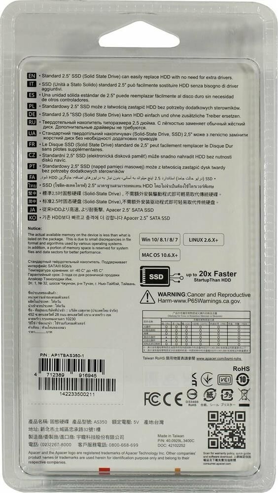 Диск SSD APACER SSD AS350 1TB SATA 2.5 (AP1TBAS350-1)