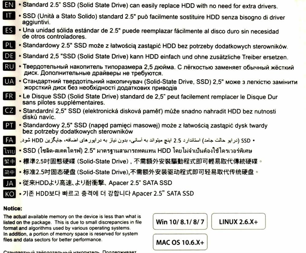 [накопитель] Apacer SSD AS350 1TB SATA 2.5" 7mm, R560/W540 Mb/s, IOPS 80/93K, MTBF 1,5M, 3D TLC, 600TBW, Retail (AP1TBAS350-1)