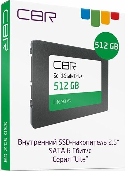 [накопитель] CBR SSD-512GB-2.5-LT22, Внутренний SSD-накопитель, серия "Lite", 512 GB, 2.5", SATA III 6 Gbit/s, SM2259XT, 3D TLC NAND, R/W speed up to 550/520 MB/s, TBW (TB) 240