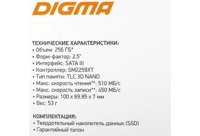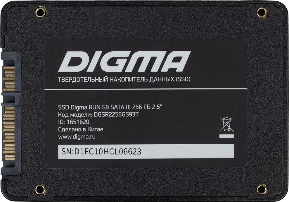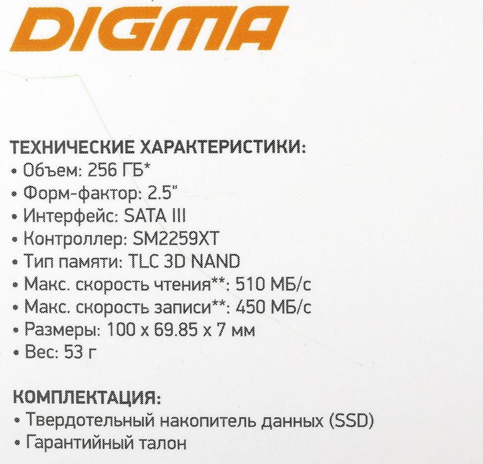 Диск SSD DIGMA SSD SATA III 256Gb DGSR2256GS93T Run S9 2.5"