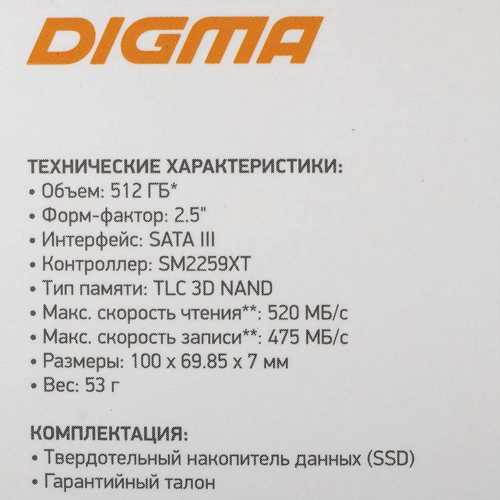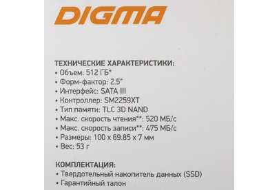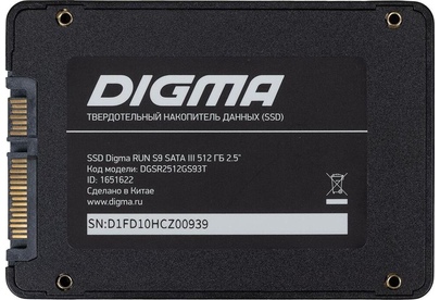 Диск SSD DIGMA SSD SATA III 512Gb DGSR2512GS93T Run S9 2.5"