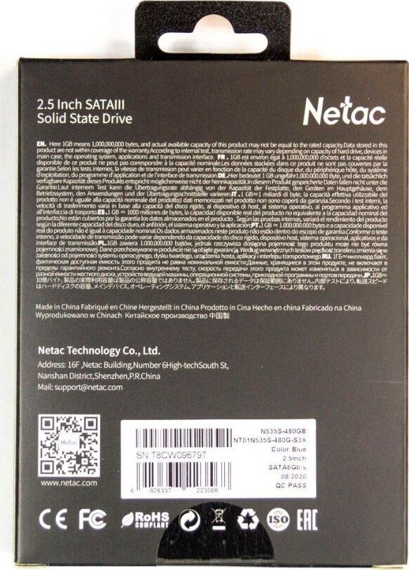 Диск SSD NETAC 480Gb SSD N535S (NT01N535S-480G-S3X)
