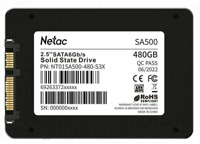 Диск SSD NETAC Накопитель SSD 2,5 SATA-III SA500 480GB NT01SA500-480-S3X TLC