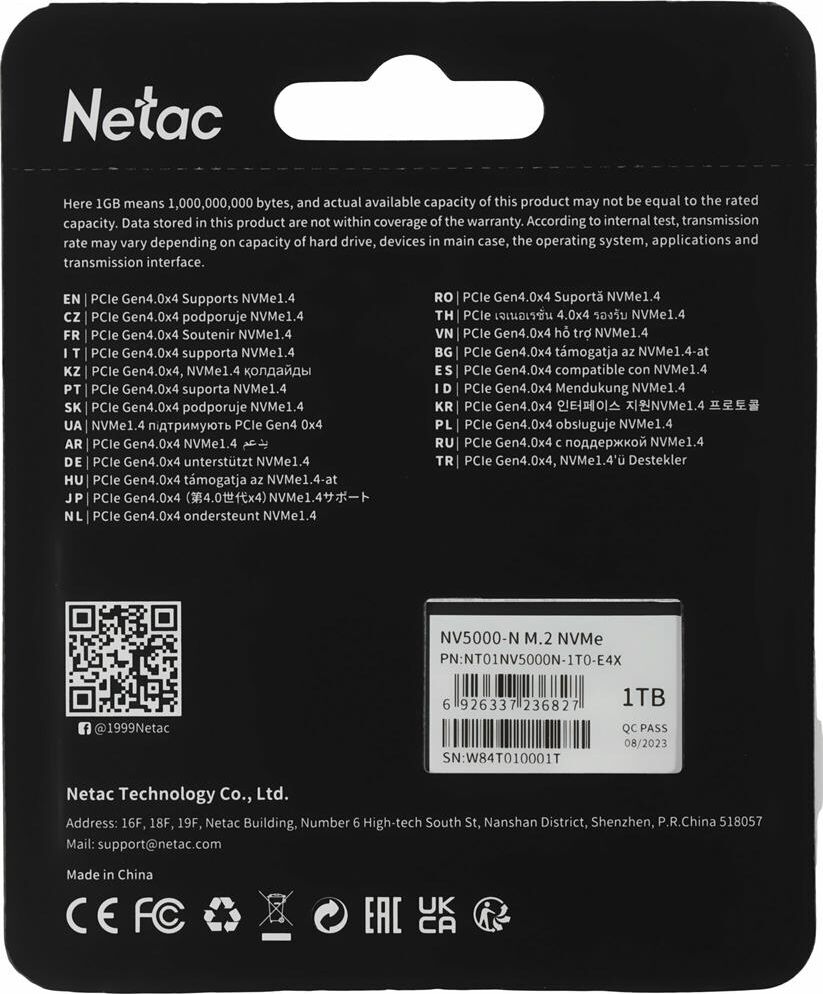 Диск SSD NETAC SSD накопитель NV5000-N NT01NV5000N-1T0-E4X 1ТБ, M.2 2280, PCIe 4.0 x4, NVMe, M.2