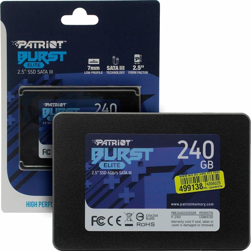 Диск SSD PATRIOT Burst Elite PBE240GS25SSDR 240ГБ, 2.5", SATA III