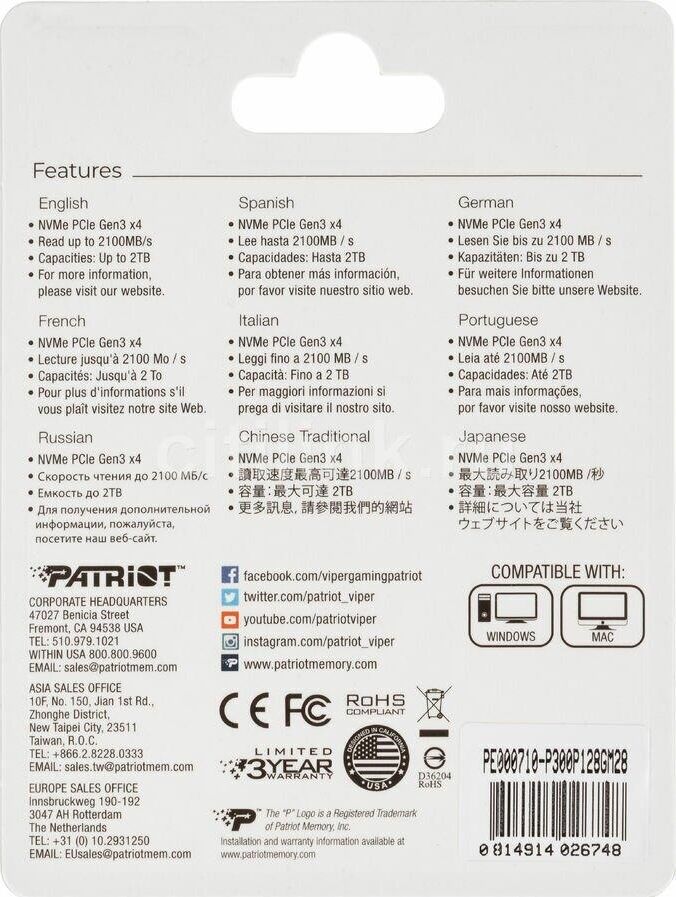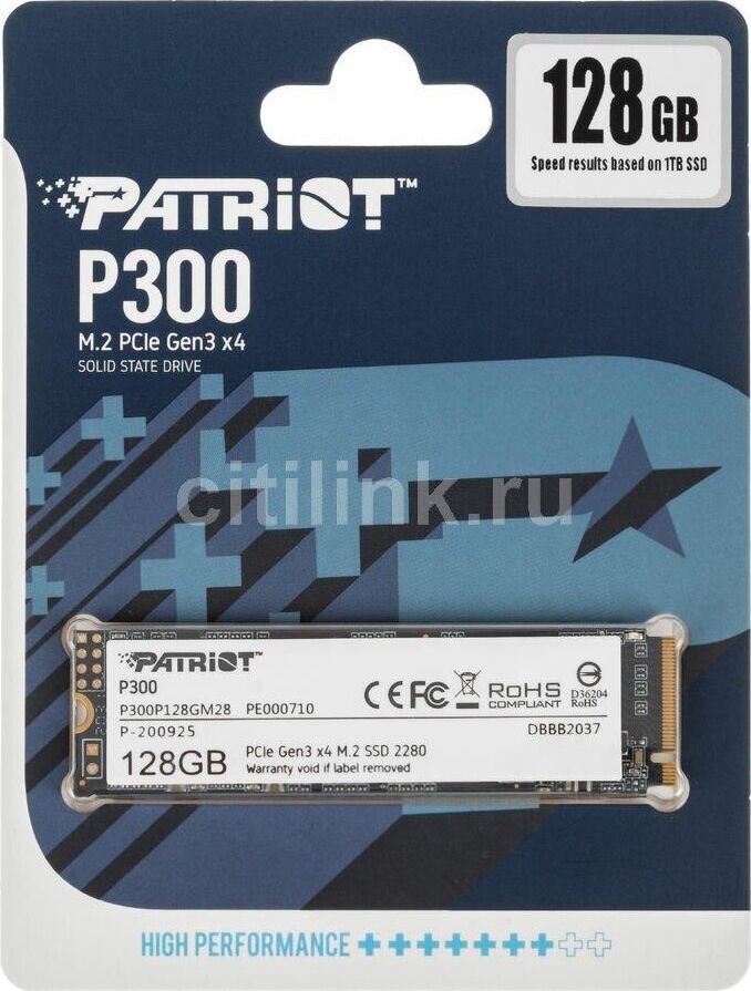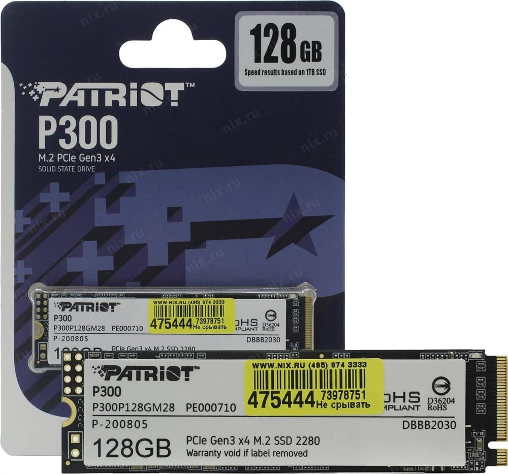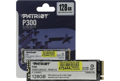 Диск SSD PATRIOT P300 P300P128GM28 128ГБ, M.2 2280, PCI-E x4, NVMe