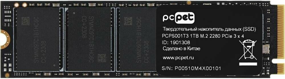 Диск SSD PC PET SSD накопитель PCPS001T3 1ТБ, M.2 2280, PCIe 3.0 x4, NVMe, M.2, oem