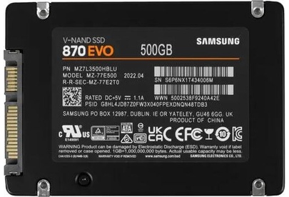 Диск SSD SAMSUNG 870 EVO MZ-77E500BW 500ГБ, 2.5", SATA III