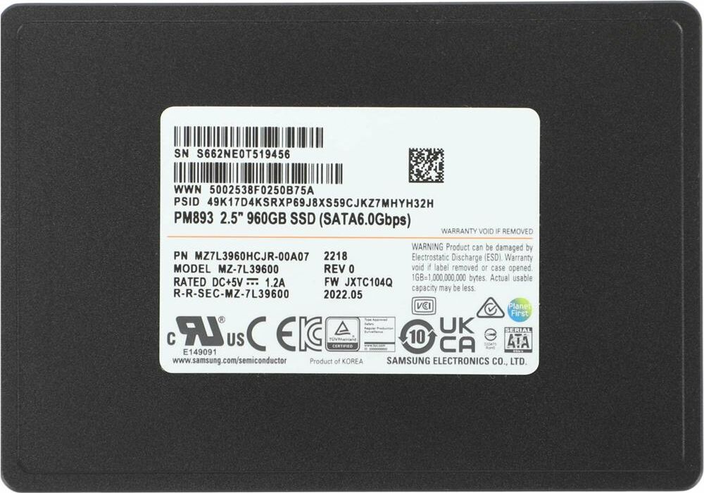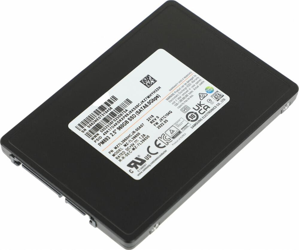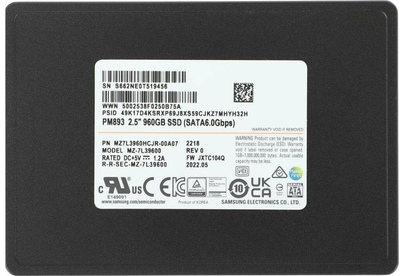 Диск SSD SAMSUNG SSD накопитель PM893 MZ7L3960HCJR-00A07 960ГБ, 2.5", SATA III, SATA, oem