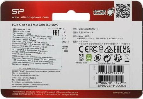 Диск SSD SILICON POWER SSD накопитель M-Series UD90 SP500GBP44UD9005 500ГБ, M.2 2280, PCIe 4.0 x4, NVMe, M.2