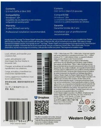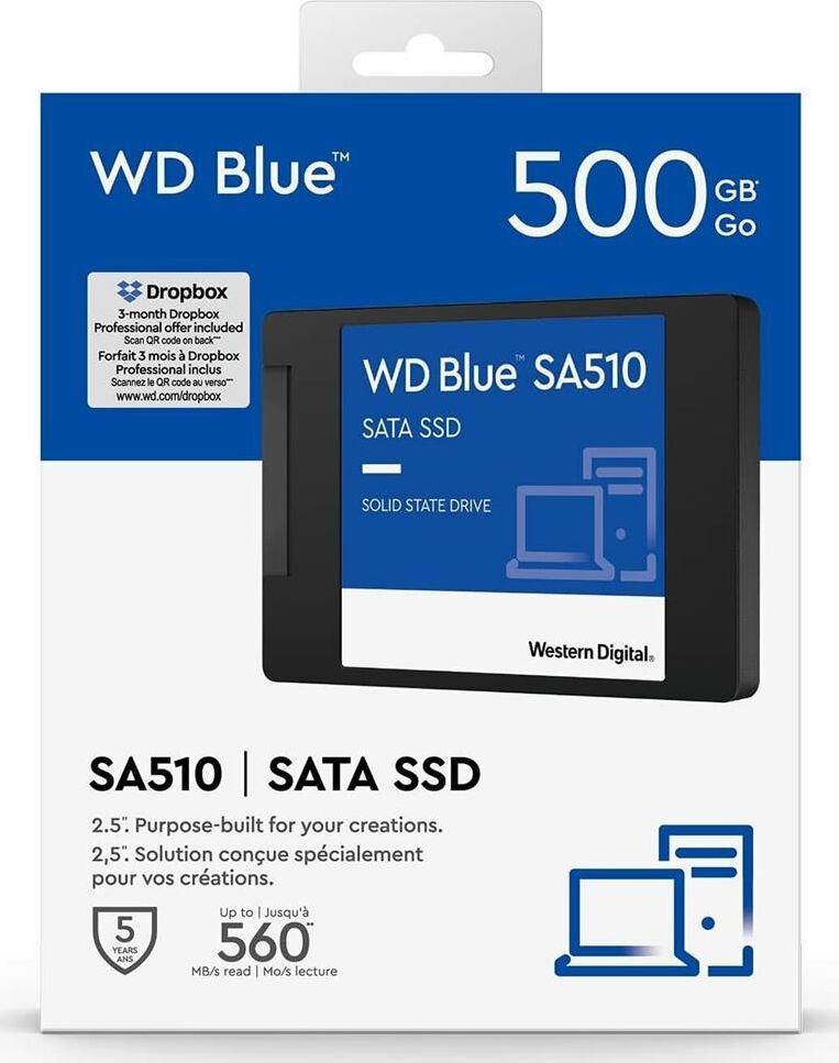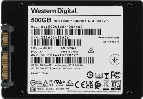 Диск SSD WD SSD накопитель Blue SA510 S500G3B0A 500ГБ, 2.5", SATA III, SATA