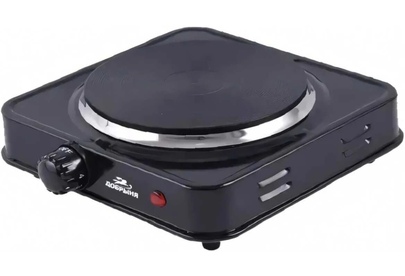 Плитка электрическая настольная. Количестово конфорок: 1шт. Мощность: 1000Вт. Тип конфорки: чугунная. Диаметр конфорки: 150мм. Количество режимов нагрева: 5. Световой индикатор работы. Сеть питания: 220В/50Гц. Защита от перегрева. Резиновые ножки. Материал корпуса: эмалированная сталь. Цвет: черный