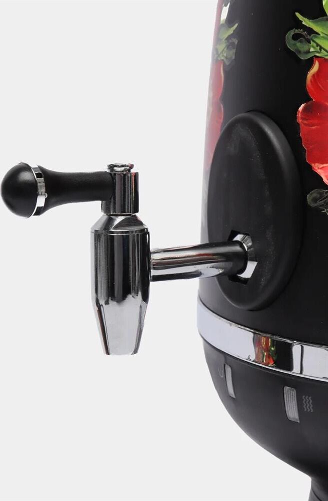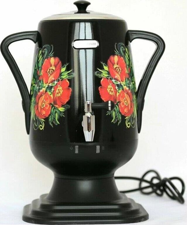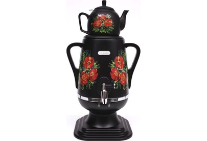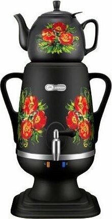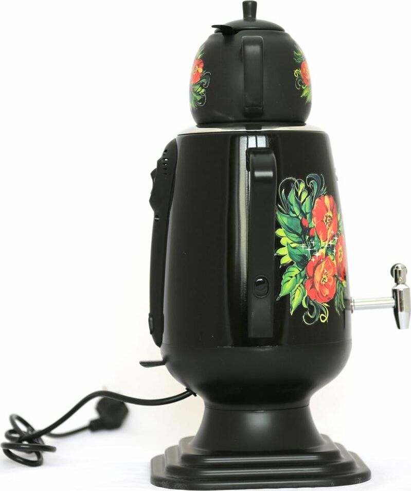 Объём 4 л. Мощность 1850 Вт. материал: термопластик. Керамический заварочный чайник 1 л. со сменным моющимся фильтром из нержавеющей стали в комплекте. Хромированный кран. Функция термопота. Дисковой нагреватель, световая индикация работы, автоматическое отключение, защита от перегрева при выкипании воды.