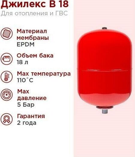 ДЖИЛЕКС Бак расширительный В 18 для системы отопления 18л. красный (7818)