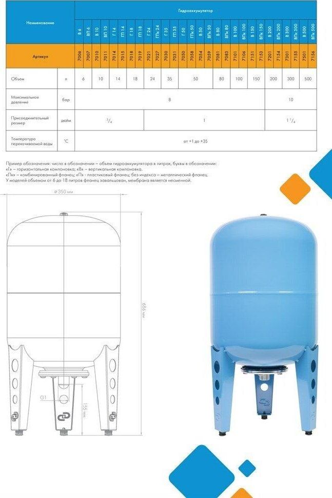 ДЖИЛЕКС Гидроаккумулятор ВП 50 к 50л 8бар голубой (7059)