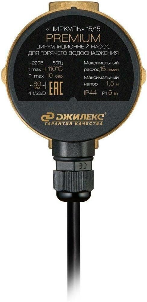 Тип: Насос. Максимальная мощность: 5. Максимальная производительность: 900. Максимальная высота подачи: 1.5. Максимальное давление: 10. Максимальная температура подачи: 110. Набор аксессуаров: отсутствует. Особенности: Корпус насоса изготовлен из латуни и не подвержен коррозии. Электродвигатель на постоянных магнитах.Максимальное КПД двигателя при минимальном электропотреблении. Бесшумная работа насоса. Ротор и подшипники насоса охлаждаются и смазываются перекачиваемой водой.. Ширина товара: 120. Высота товара: 150. Длина товара: 180. Вес товара: 1.2. Назначение по воде: для чистой воды. Тип по расположению: поверхностный. Присоединительный размер: 1/2. Длина кабеля: 1.5. Возможность наращивать кабель без потери гарантии: есть. Комплектация: Циркуляционный насос для ГВС «ЦИРКУЛЬ» 15/15 PREMIUM. Инструкция по эксплуатации + гарантийный талон.. Напряжение сети: 220В. Материал корпуса: латунь. Габариты упаковки (ед) ДхШхВ: 0.18x0.12x0.15. Вес упаковки (ед): 1.23. Страна производства: Китай. Тип по назначению: ци