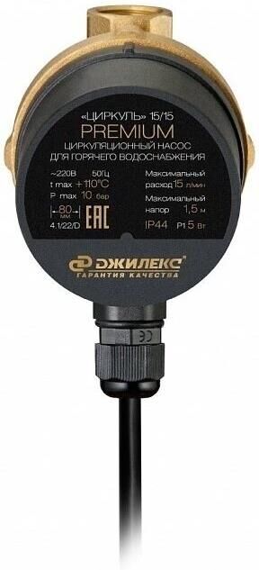 ДЖИЛЕКС Насос циркуляционный Циркуль 15/15 PREMIUM, поверхностный, 900л/ч [2400]