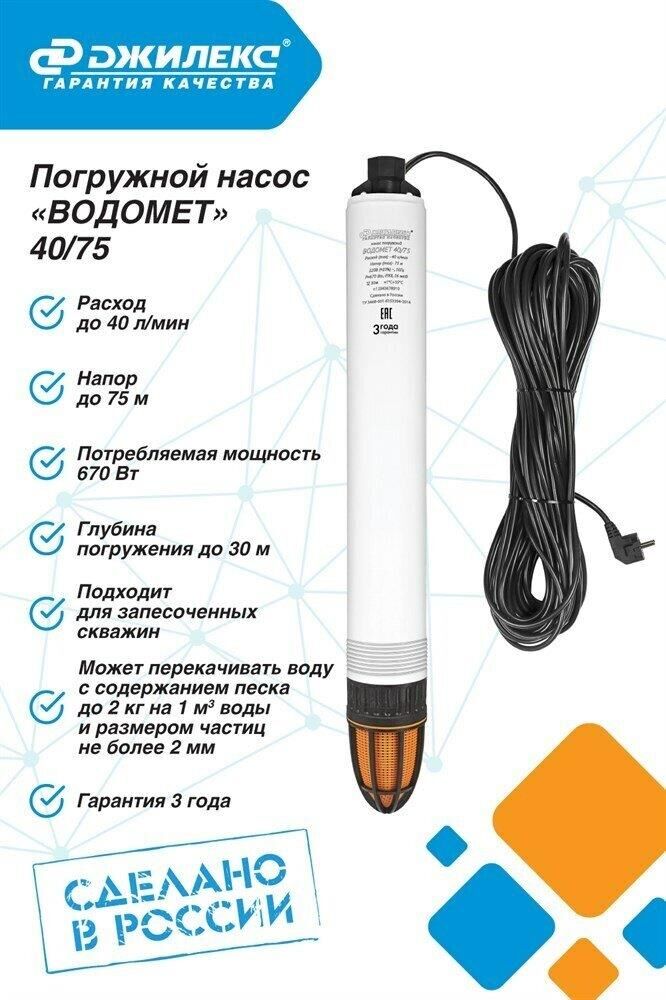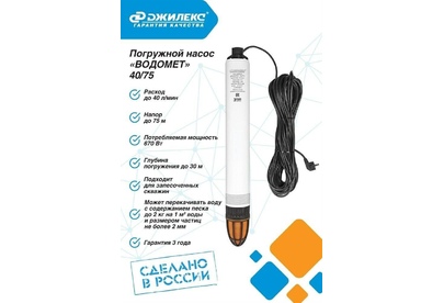 ТипСадовый насос Длина кабеля30 м Тип по механизмускважинный Тип по расположениюпогружной Назначение по водедля чистой воды Максимальная мощность670 Вт Максимальная производительность2400 л/ч Максимальная высота подачи75 м Максимальная глубина погружения30 м Максимальная температура подачи35 °С Максимальный размер частиц1.5 мм