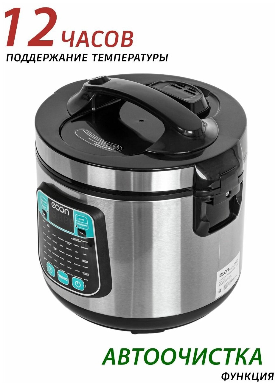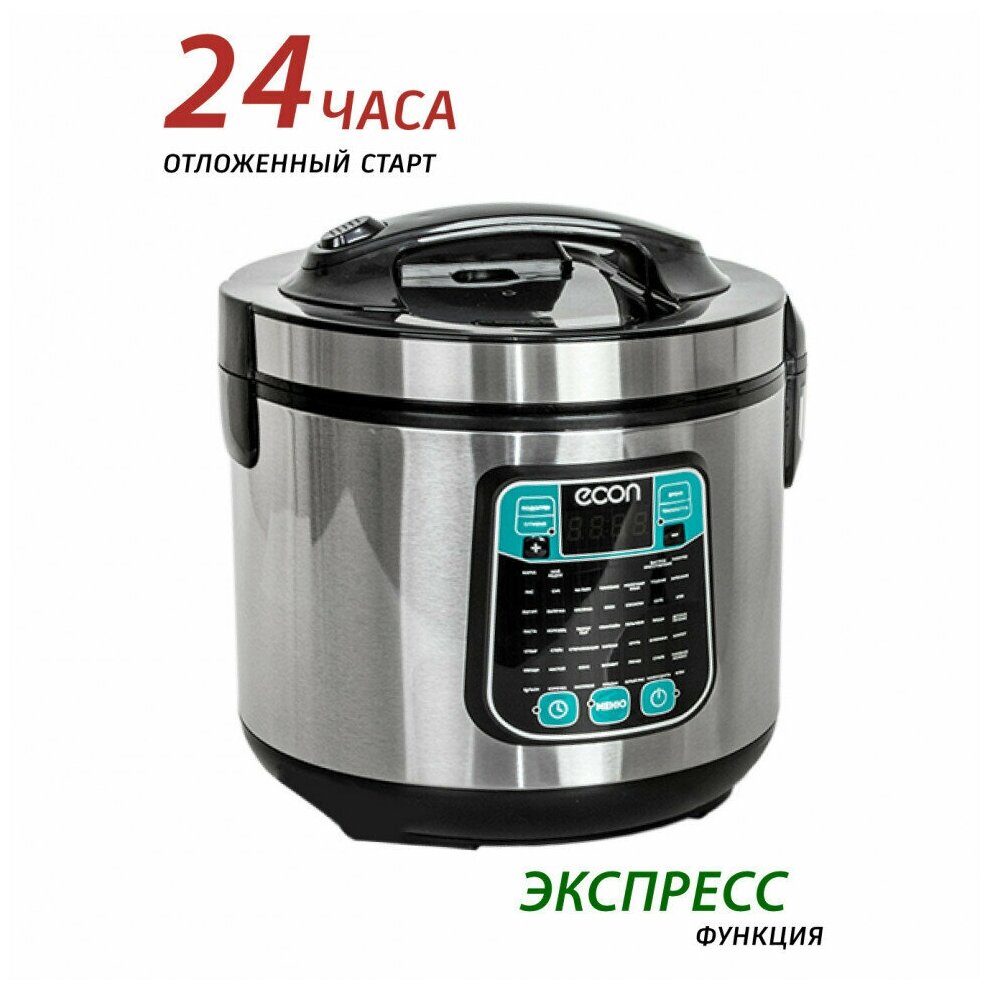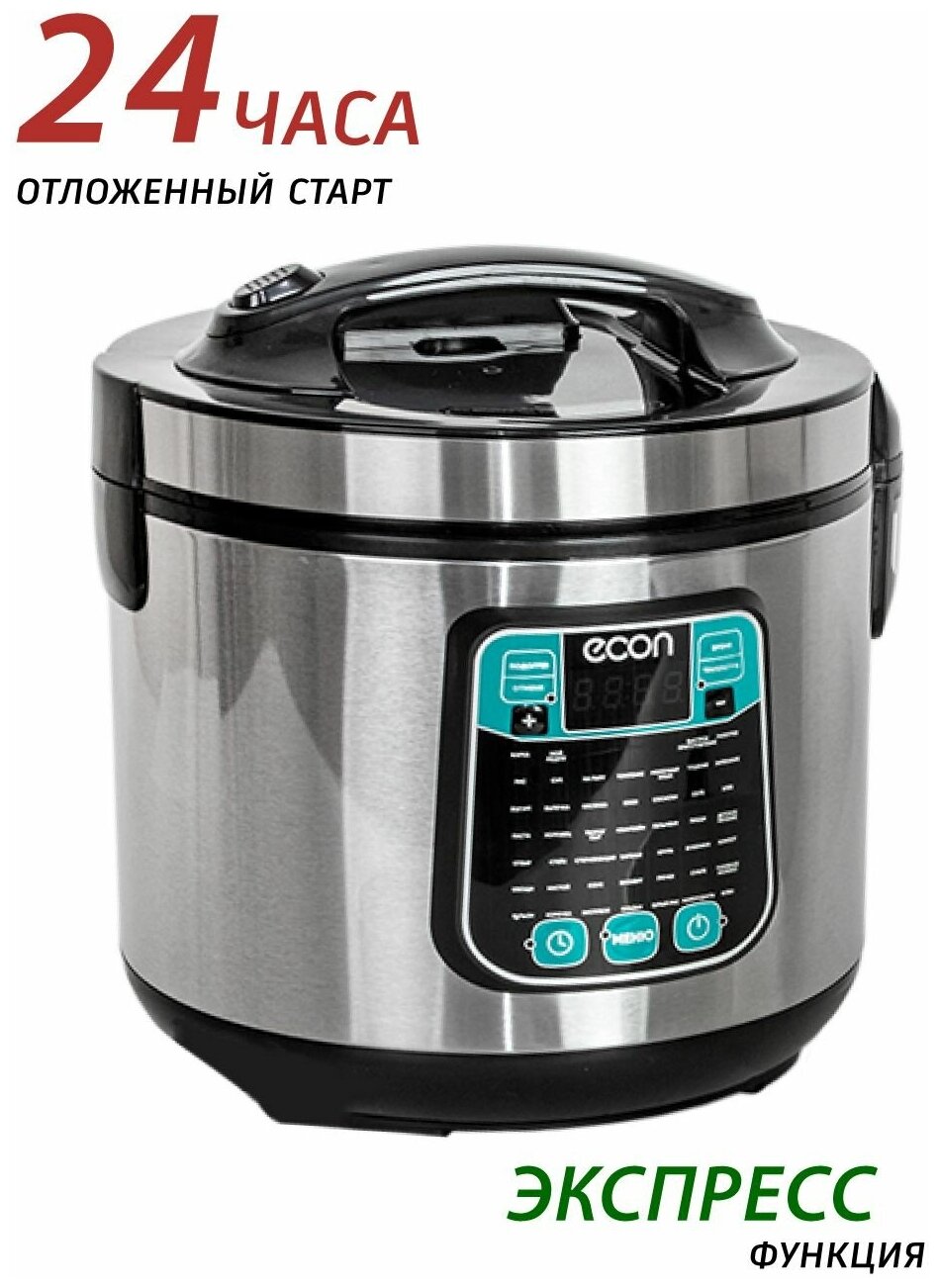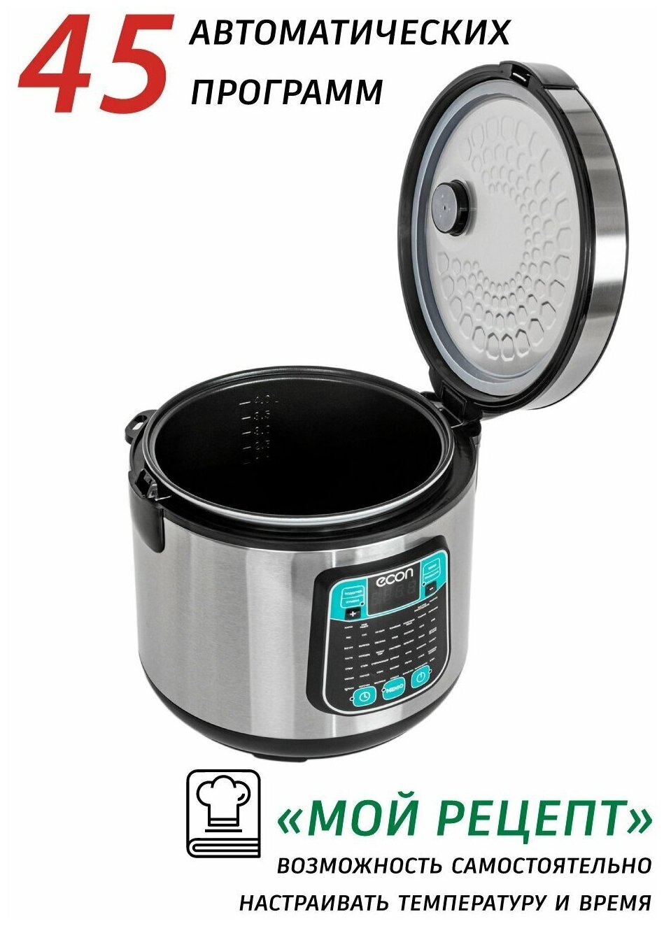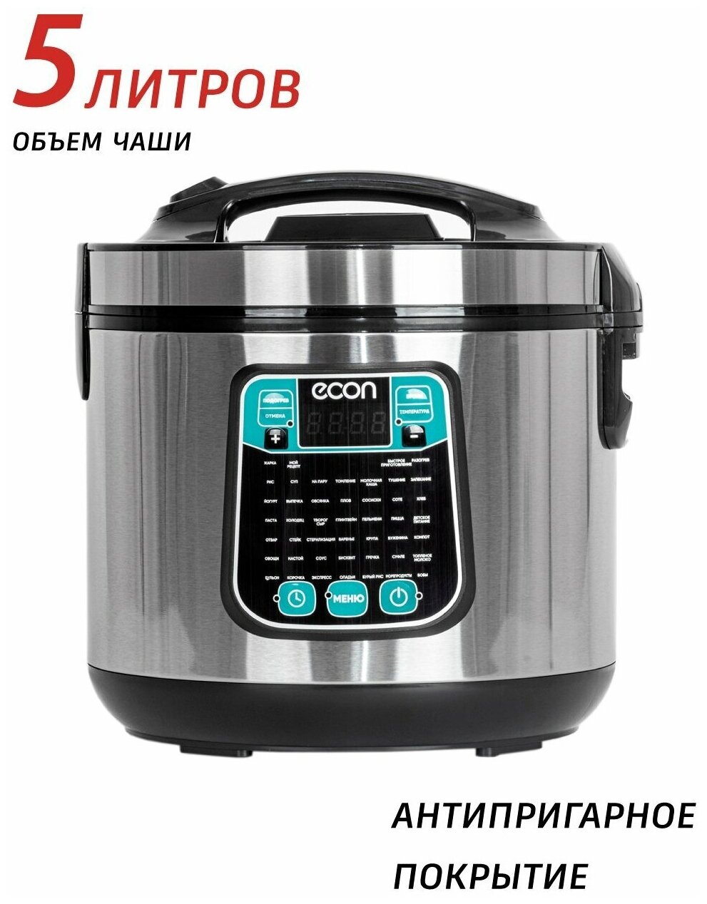 Мультиварка, мощность 860 ватт, объем чаши: 5 литров, объем чаши позволяет приготовить блюдо до 10 порций,45 автоматических программ c функцией мультиповар, антипригарное покрытие внутренней чаши – прочное и устойчивое к царапинам Daikin. Аксессуары: ложка, чаша для приготовления на пару, мерный стакан.