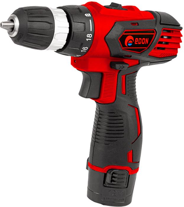 Дрель-шуруповерт аккумуляторная безударная Edon AD-12CA, предназначена для закручивания, отворачивания винтов и шурупов, сверления отверстий в различных конструкционных материалах (в том числе металле, дереве, пластмассе и т.д.). Максимальный крутящий момент - 23 Н•м.; Емкость аккумулятора - 2 А•ч.; Напряжение аккумулятора - 12 В.; Макс. число оборотов холостого хода: 0 - 350 об/мин.; 0 - 1350 об/мин.; Диаметр патрона, макс. - 10 мм.; Вес инструмента с аккумулятором - 0,97 кг.
