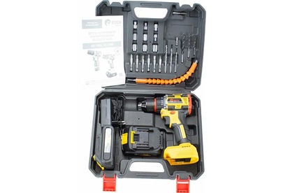 Аккумуляторная дрель-шуруповерт предназначена для сверления отверстий в цветных и черных металлах, пластмассах, дереве и других строительных материалах. Кроме того, инструмент можно использовать для завинчивания и отвинчивания винтов, шурупов, саморезов. Напряжение - 18 В.; Максимальный крутящий момент - 60 Нм.; Скорость вращения - 0-450, 450-1430 об/мин.; Емкость аккумулятора - 2,0 Ач.; Максимальный диаметр зажимаемого сверла - 10 мм.; Вес инструмента - 1,13 кг.