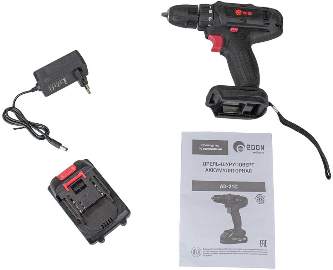 Edon AD-21C Дрель-шуруповерт аккумуляторная (21В; Li-Ion; 2.0Ач; 0-400/0-1500об/мин)