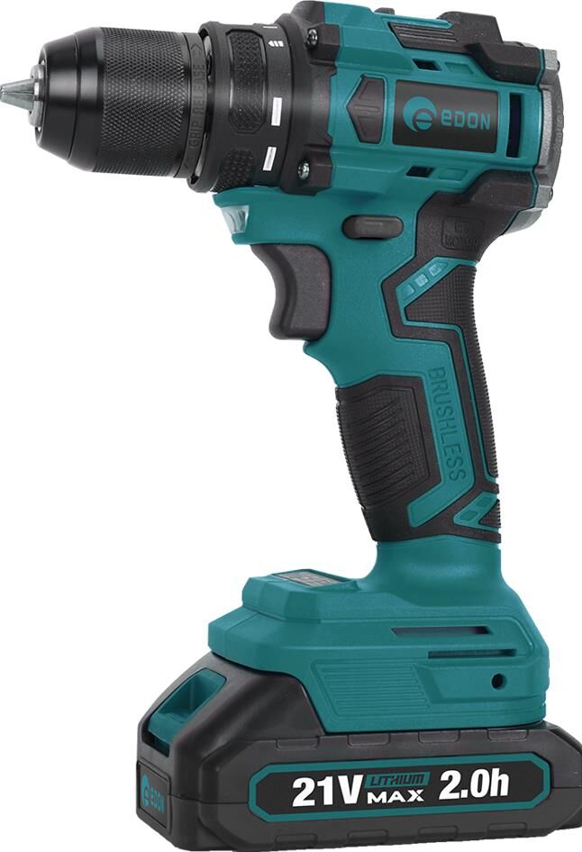 Дрель-шуруповерт аккумуляторная бесщеточная ударная Edon AD-21СBL, предназначена для закручивания, отворачивания винтов и шурупов, сверления отверстий в различных конструкционных материалах, имеет функцию удара и соответственно возможность сверления в бетоне, кирпиче, пено-блоке и других строительных материалах. Напряжение питания - 21 В.; Частота вращения - 0-450 / 0-1450 об/мин.; Емкость аккумулятора - 2 Ач.; Крутящий момент - 33 Нм.; Диаметр отверстия в патроне под оснастку - 1.0-10.0 мм.; Вес инструмента - 1,2 кг.