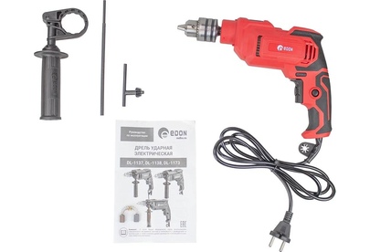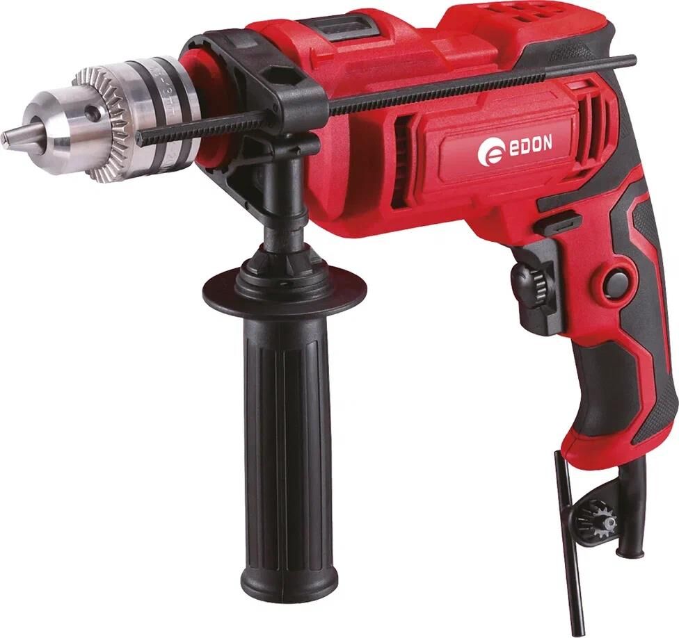 Питание от сети Дополнительные режимы работы сверление с ударом Тип электродвигателя Коллекторный (щеточный) Мощность, Вт. 1100 Макс. число оборотов холостого хода, об/мин 3000 Диаметр патрона, макс., мм 13 Тип патрона ключевой Макс. частота ударов, уд/мин 48000 Макс. диаметр сверления дерево, мм 20 Дополнительная рукоятка Реверс Электронная регулировка частоты вращения Ограничитель глубины сверления Длина сетевого кабеля, м 1,9 Вес инструмента, кг. 1,52