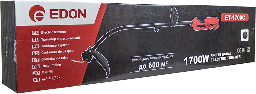 Номинальное напряжение, В - 220;Частота, Гц ~50;Потребляемая мощность, Вт - 1700;Диаметр среза (леска), мм - 430;Толщина лески, мм - 1,6;Частота вращения на холостом ходу, об/мин - 7000;Подача лески - полуавтоматическая; Расположение двигателя - верхнее; Разъемная штанга - есть; Тип рукоятки - D-образная;Класс безопасности (ГОСТ Р МЭК 60745-1-2011) - II;Степень защиты - IP20; Электродвигатель - однофазный коллекторный.