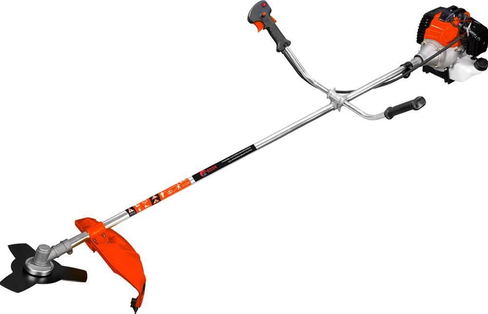 Объём двигателя - 43 см3; мощность двигателя - 2,6 кВт (3,5 л.с.); двигатель - 2-х тактный, с воздушным охлаждением; тип зажигания - электронный, бесконтактный; зазор свечи зажигания - 0.7 мм.; топливо - смесь бензина АИ-92 (неэтилированного) с маслом для 2-х тактных двигателей; топливная смесь - 25:1;- тип свечи зажигания - для 2-х тактных двигателей; ширина захвата (нож/леска) - 254/400 мм.;-система подачи лески - полуавтоматическая; способ запуска - ручной стартер; размеры двигателя - 320/300/255 мм.; размеры штанги - 1550/135/175 мм.; вес инструмента - 5.9 кг.