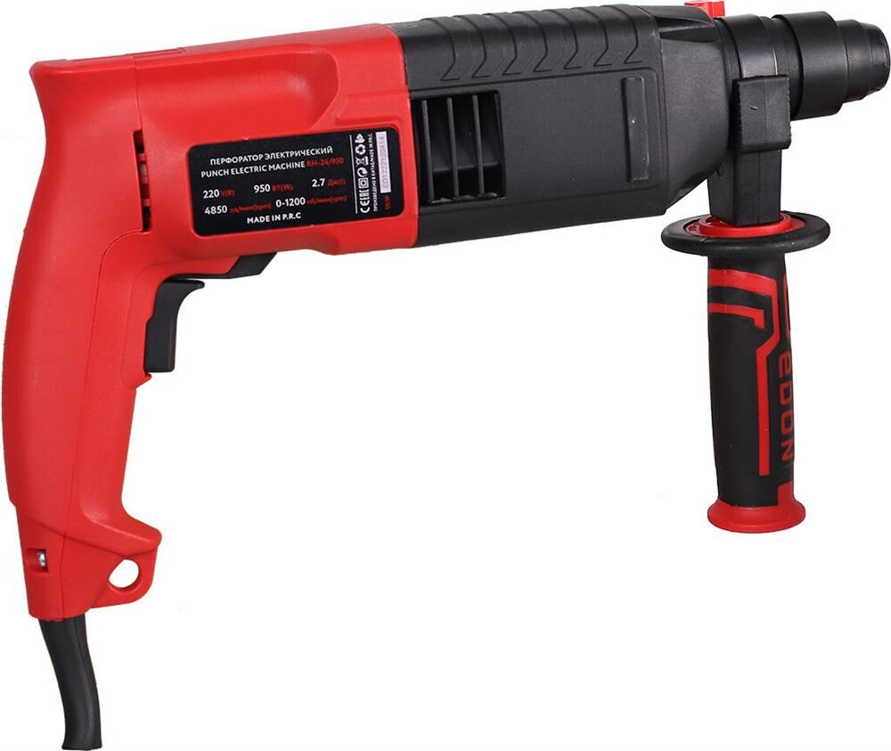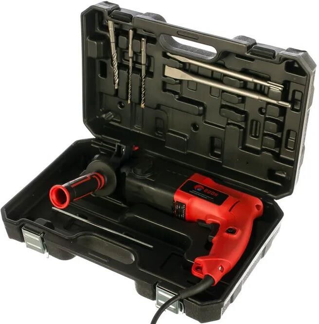 Мощность - 950 Вт.; Макс. число оборотов холостого хода - 1200 об/мин.; Макс. энергия удара - 2,3 Дж.; Макс. частота ударов - 4850 уд/мин.; Макс. диаметр сверления (металл/дерево/бетон) - 13/30/24 мм.; Длина сетевого кабеля - 2 м. Комплектация: - перфоратор - 1 шт.; - долото SDS-plus - 1 шт.; - пика SDS-plus - 1 шт.; - бур SDS-plus 6 мм - 1 шт.; - бур SDS-plus 8 мм - 1 шт.; - бур SDS-plus 10 мм - 1 шт.; - патрон SDS-plus PA6-GF35 - 1 шт.; - стержень ограничитель - 1 шт.; - руководство по эксплуатации - 1 шт.; - пластиковый кейс - 1 шт.