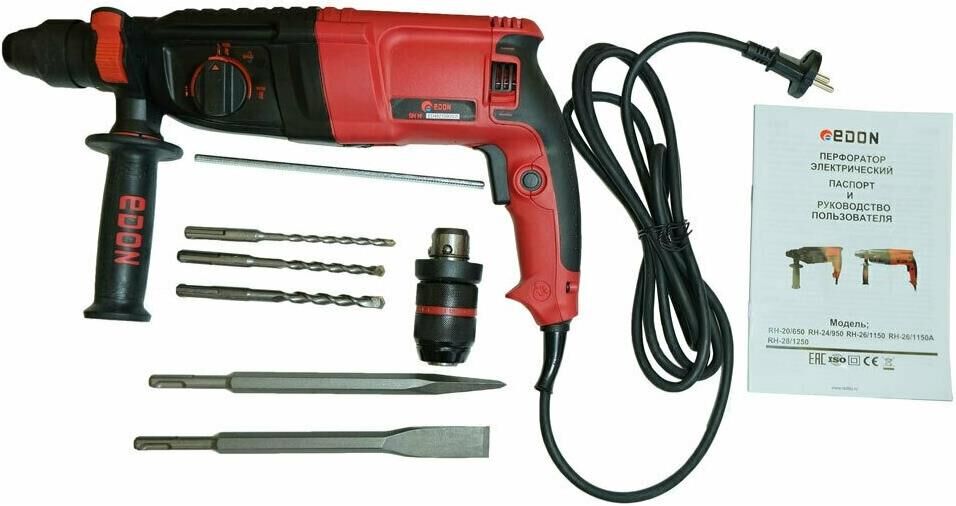 Мощность - 1150 Вт.; Макс. число оборотов холостого хода - 0 - 1250 об/мин.; Макс. энергия удара - 3,2 Дж.; Макс. диаметр сверления (металл/дерево/бетон) - 13/30/26 мм.; Макс. частота ударов - 5100 уд/мин. - перфоратор - 1 шт.; - долото SDS-plus - 1 шт.; - пика SDS-plus - 1 шт.; - бур SDS-plus 6 мм - 1 шт.; - бур SDS-plus 8 мм - 1 шт.; - бур SDS-plus 10 мм - 1 шт.; - стержень ограничитель - 1 шт.; - руководство по эксплуатации - 1 шт.; - пластиковый кейс - 1 шт.