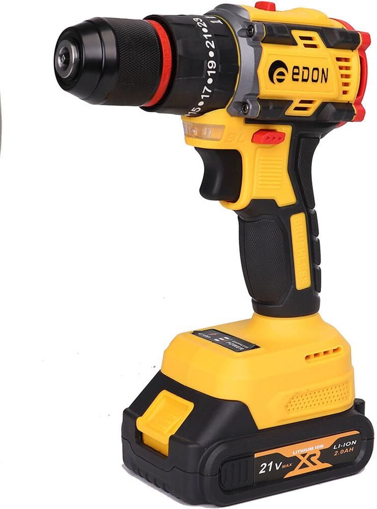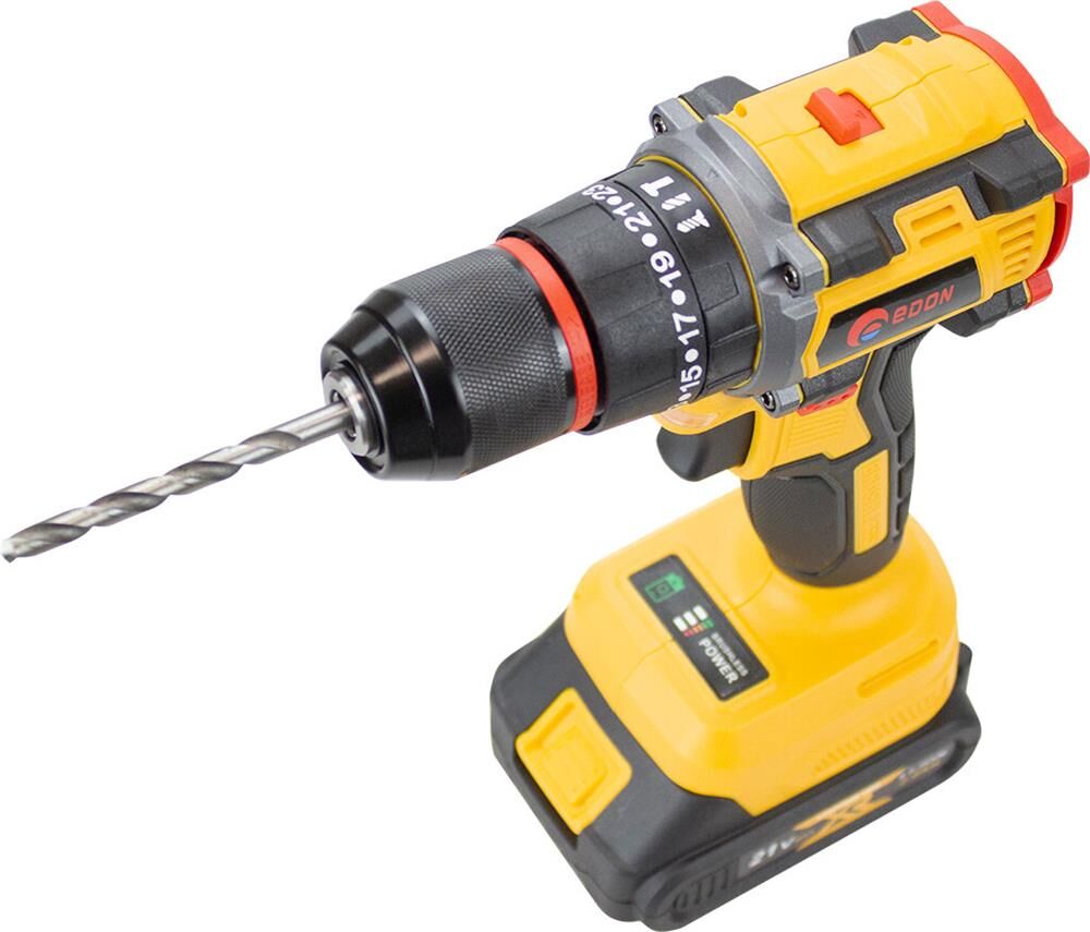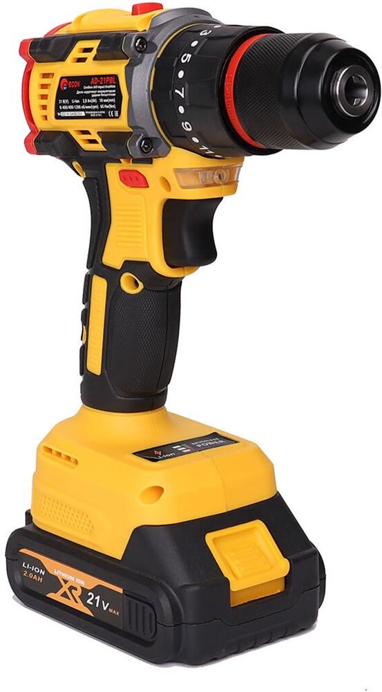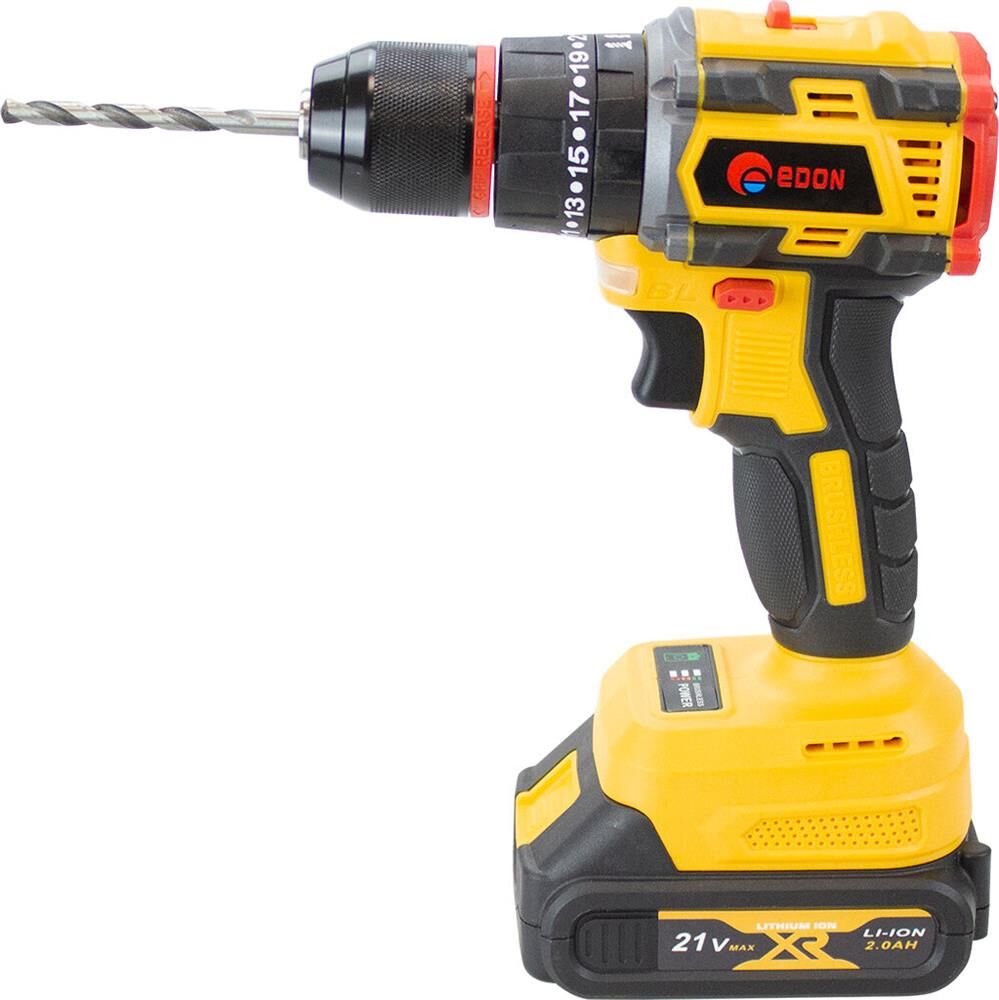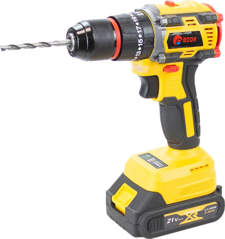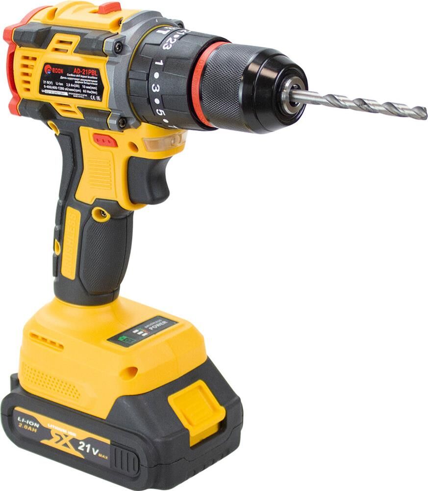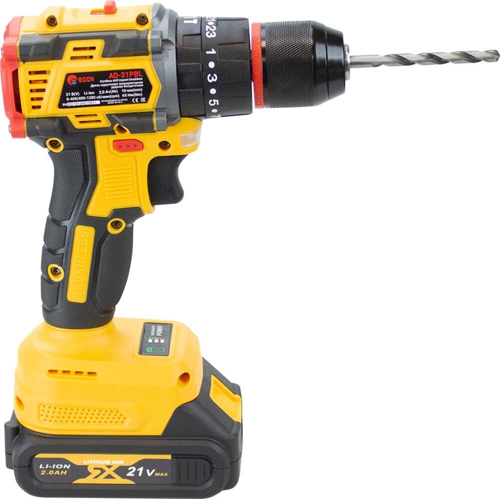 Тип аккумулятора -Li-Ion, в комплекте2 аккумулятора. Количество скоростей работы-2, тип двигателя инструмента-бесщеточный, максимальное число оборотов - 1450 об/мин, есть наличие удара, тип патрона – быстрозажимной, максимальный крутящий момент (Н/м)-40, максимальный диаметр сверления стали-10 мм, емкость аккумулятора (А/ч)-2 Ач, напряжение аккумулятора (В)-21 В. Индикация уровня заряда батареи, противоскользящие вставки, электронная защита от перегрузок.