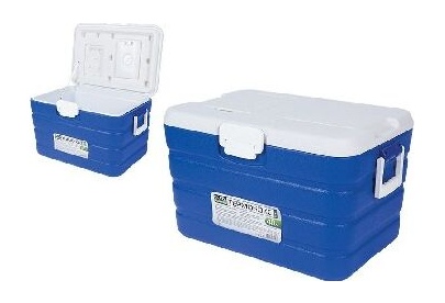 Сохраняет холод в течение 24 часов Обьем: 40л с крышкой Усиленные металлические петли(не пластик), продлят срок службы термобокса внешние габариты: 575x375x335мм. Вес: 3.0кг вместимость банок 0,33: 56 штук Материалы: внешний слой и крышка - HDPE внутренний слой - полистирол/PP изоляция - EPS