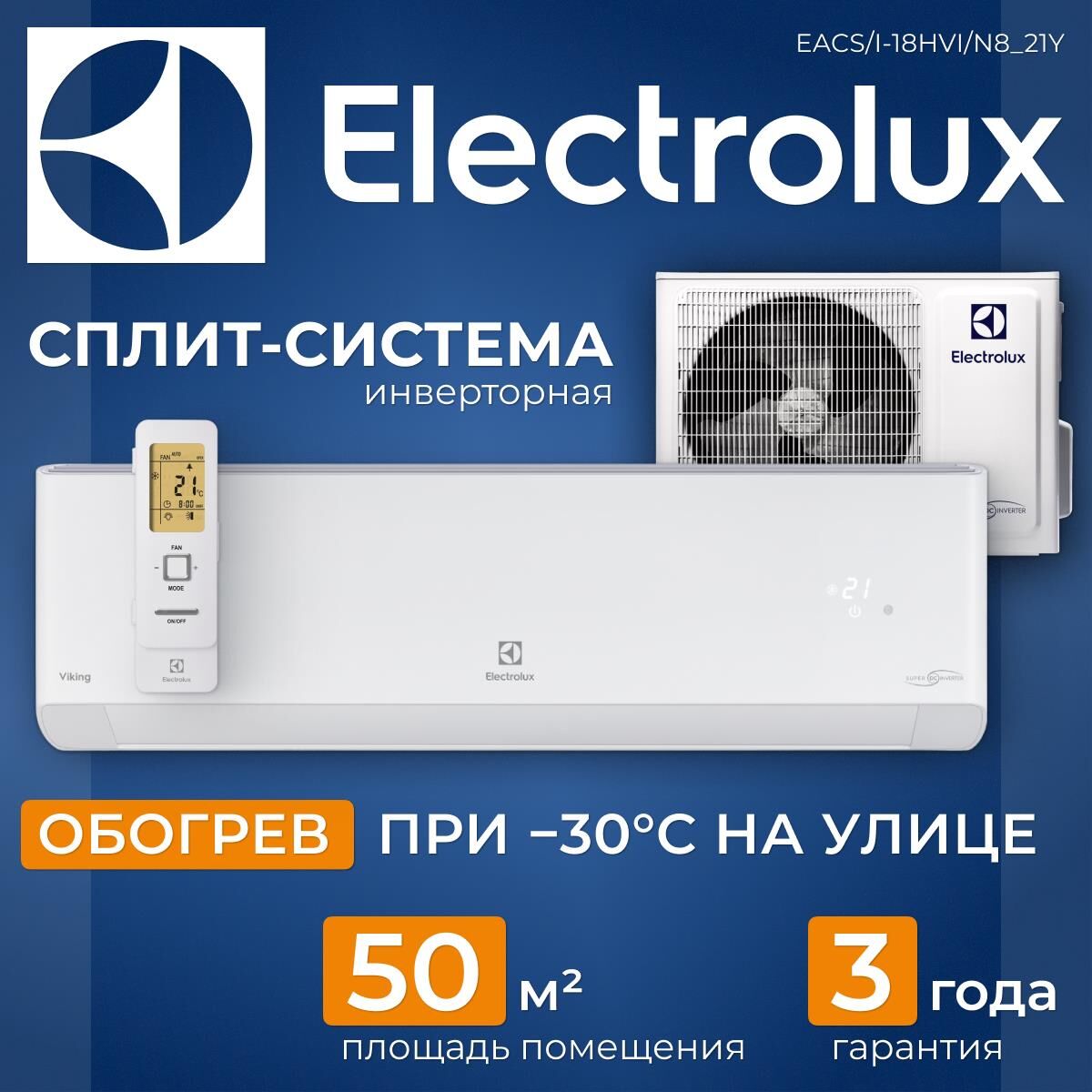 ELECTROLUX Кондиционер EACS/I-18HVI/N8_21Y Тепловой насос VIKING 2.0 (комплект)