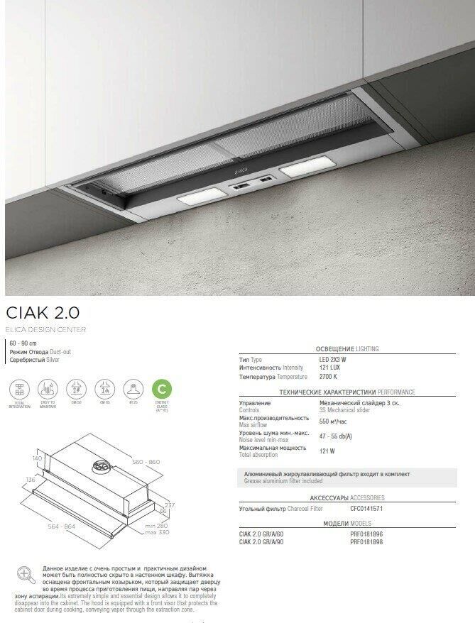 ELICA Встраиваемая вытяжка Ciak 2.0 GR/A/90, управление ползунковое, серый [prf0181898]