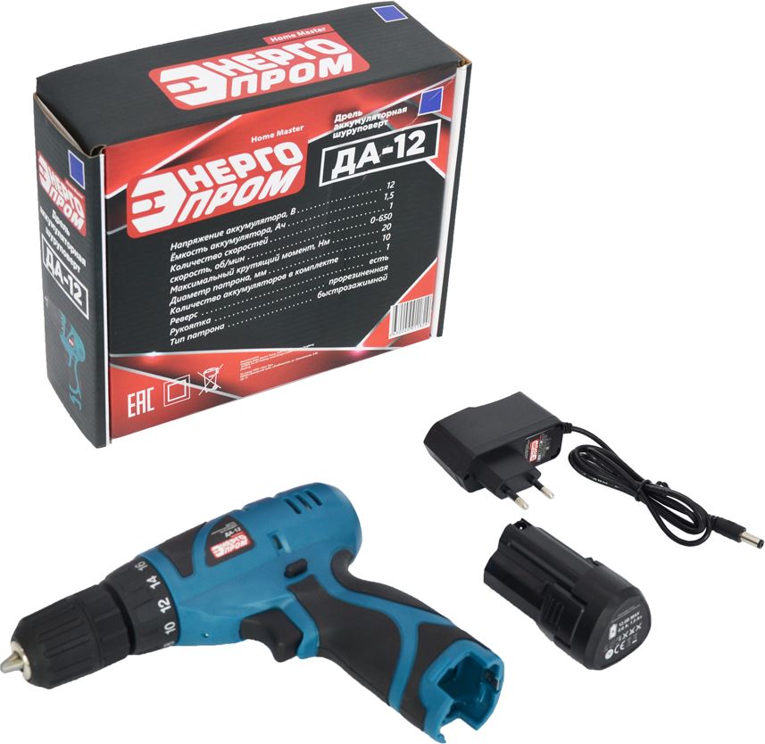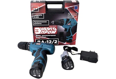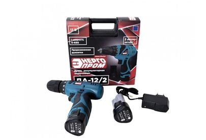 Дрель шуруповёрт аккумуляторная "ЭНЕРГОПРОМ HOME MASTER" ДА-12/2 Напряжение аккумулятора 12 B Емкость аккумулятора1.5 Ач Количество скоростей 1, 0-650 об/мин Максимальный крутящий момент 20 Hм Диаметр патрона 10 мм Количество аккумуляторов в комплекте 2 Быстрая зарядка за 1 час, Реверс есть, Прорезиненная рукоятка, Тип патрона быстророзжимной, Упаковка: кейс
