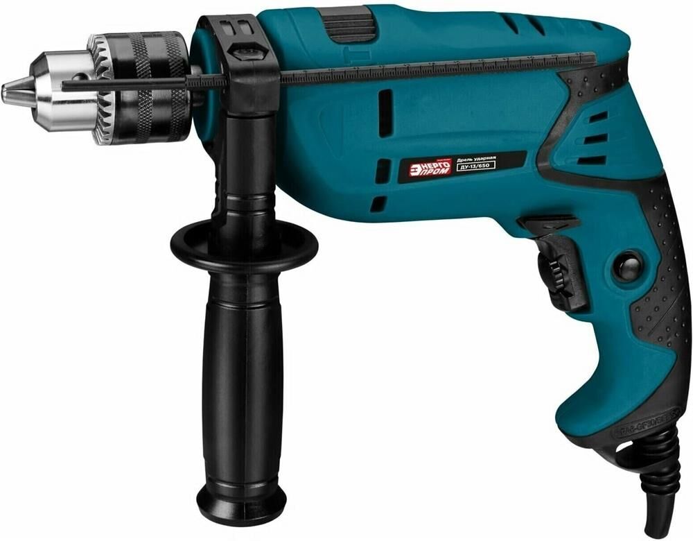 ЭНЕРГОПРОМ HOME MASTER ДУ-13/650 Потребляемая мощность: 650 Вт Номинальное напряжение: 230V/50Гц Частота вращения: ( 1 / 2 скорость ) 0-2800 об/мин Частота ударов 0-44800 уд/мин Макс. диаметр сверления: -в стали 10 мм -в бетоне 13 мм -в дереве 20 мм Вес: 2,8 кг