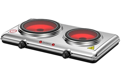 Плита инфракрасная Размер конфорок 175 мм +150 мм Стеклокерамическая поверхность Корпус из нержавеющей стали Световой индикатор работы Плавная регулировка температуры конфорки Защита от перегрева Пригодна для всех видов посуды За счёт быстрого нагрева экономия времени и электроэнергии Мощность конфорки 1200 Вт + 900 Вт Длина шнура 58 см