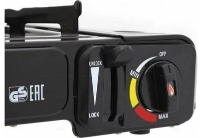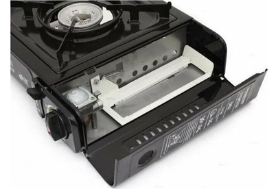 Мощность 8000BTU (2.5 КВт) - Пьезоподжиг - Регулятор пламени - Рабочая поверхность - нержавеющая сталь - Походная плитка - Работает от стандартного цангового баллона-катриджа с пропаном - В кейсе