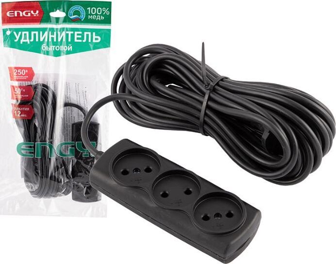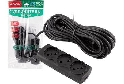 ENGY Удлинитель "Премиум" 10м/3роз. (ПВС 2х0,75) черный (186742)
